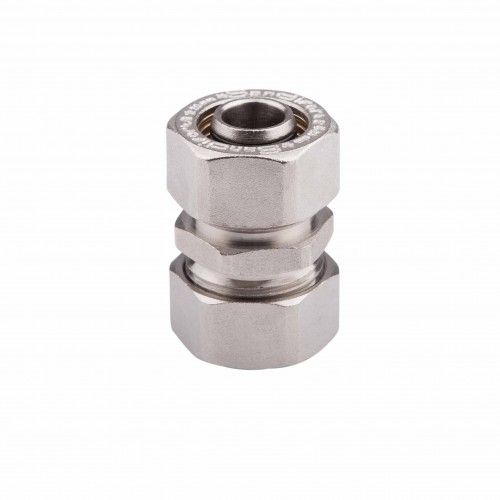 Фитинг обжимной (латунный) соединительный, для металлопластиковых труб.