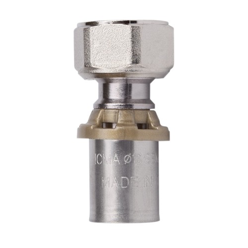 Пресс-фитинг SEMPITER® c вращающейся гайкой для подключения к коллекторам и вентилям. ICMA арт.415